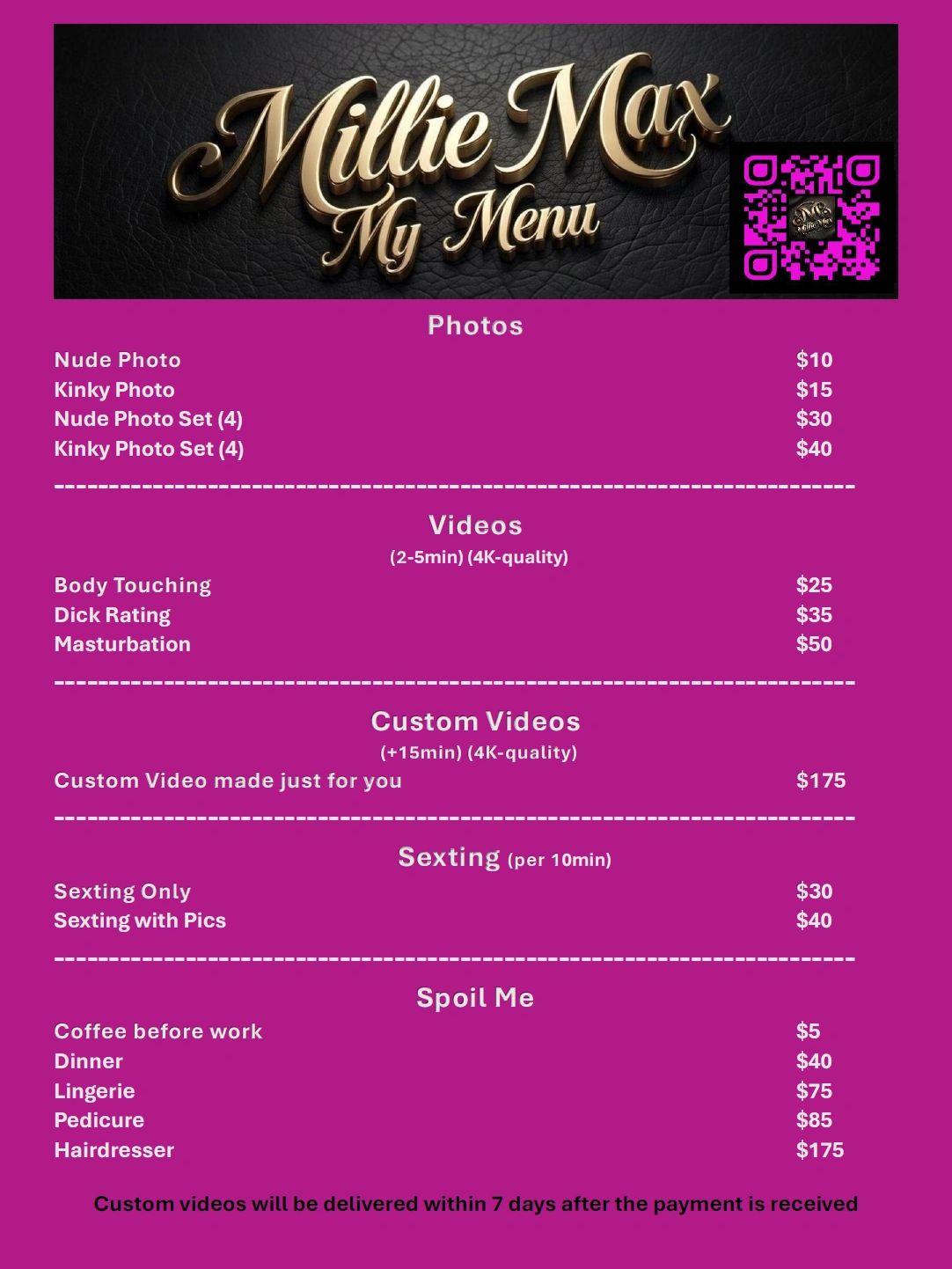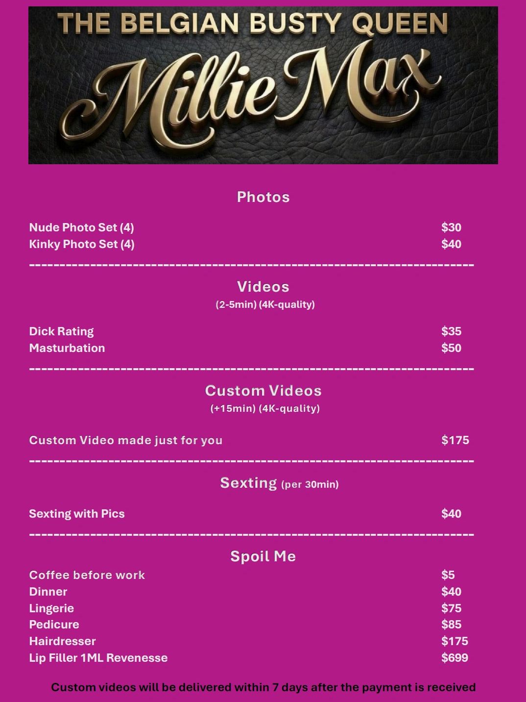 Above that you also get an exclusive video call with me where you can dresss me up the way you like and have an intimate moment with me.